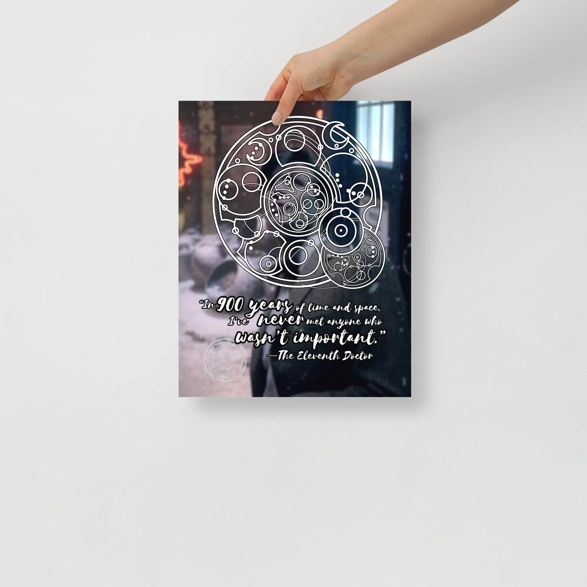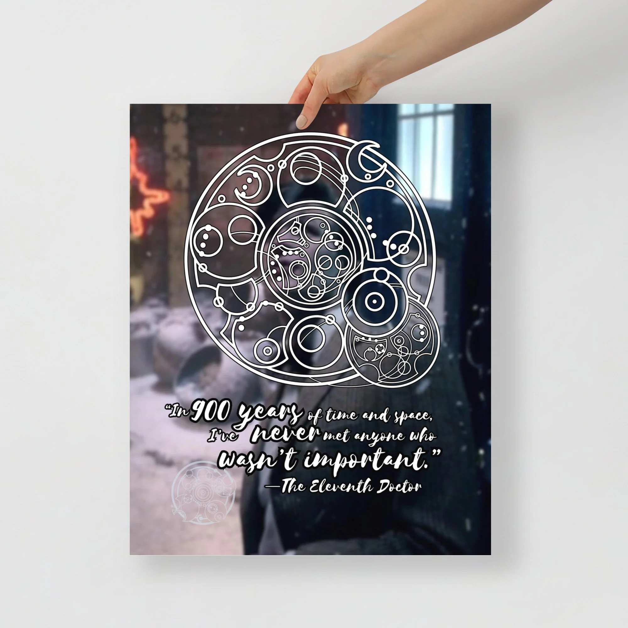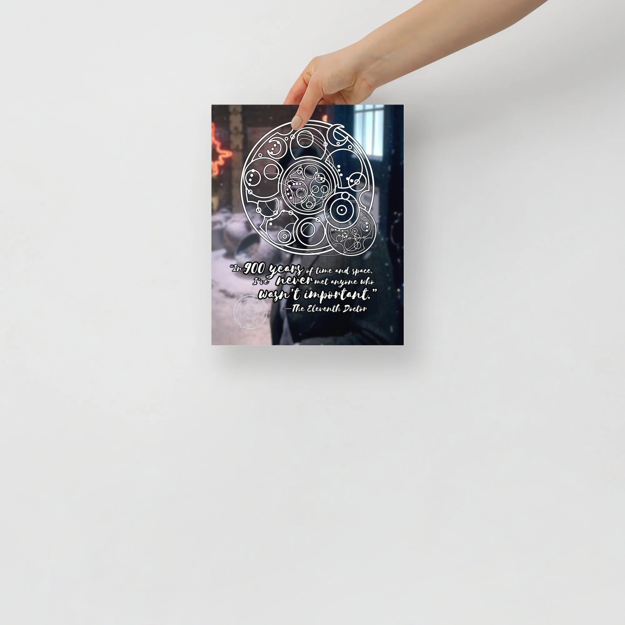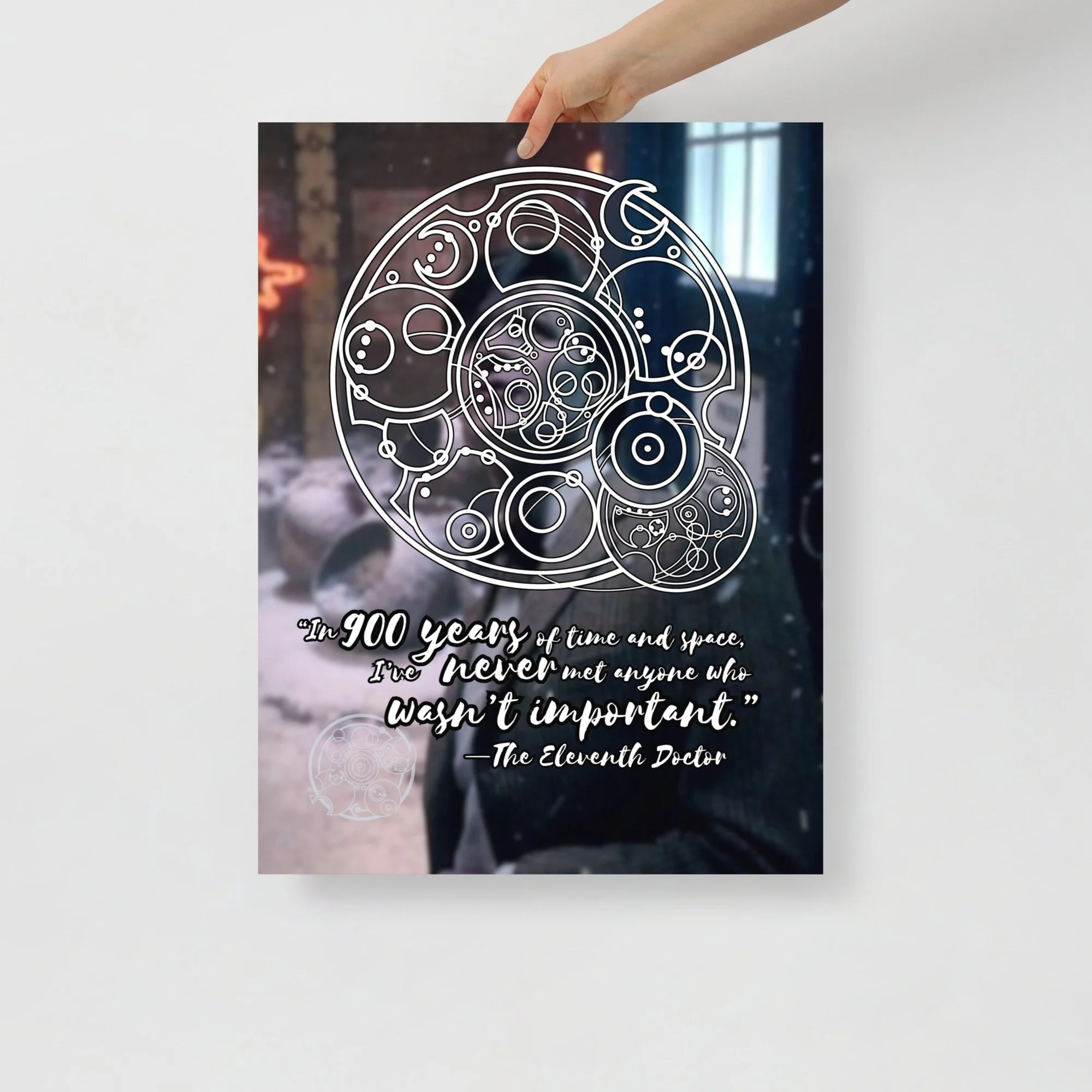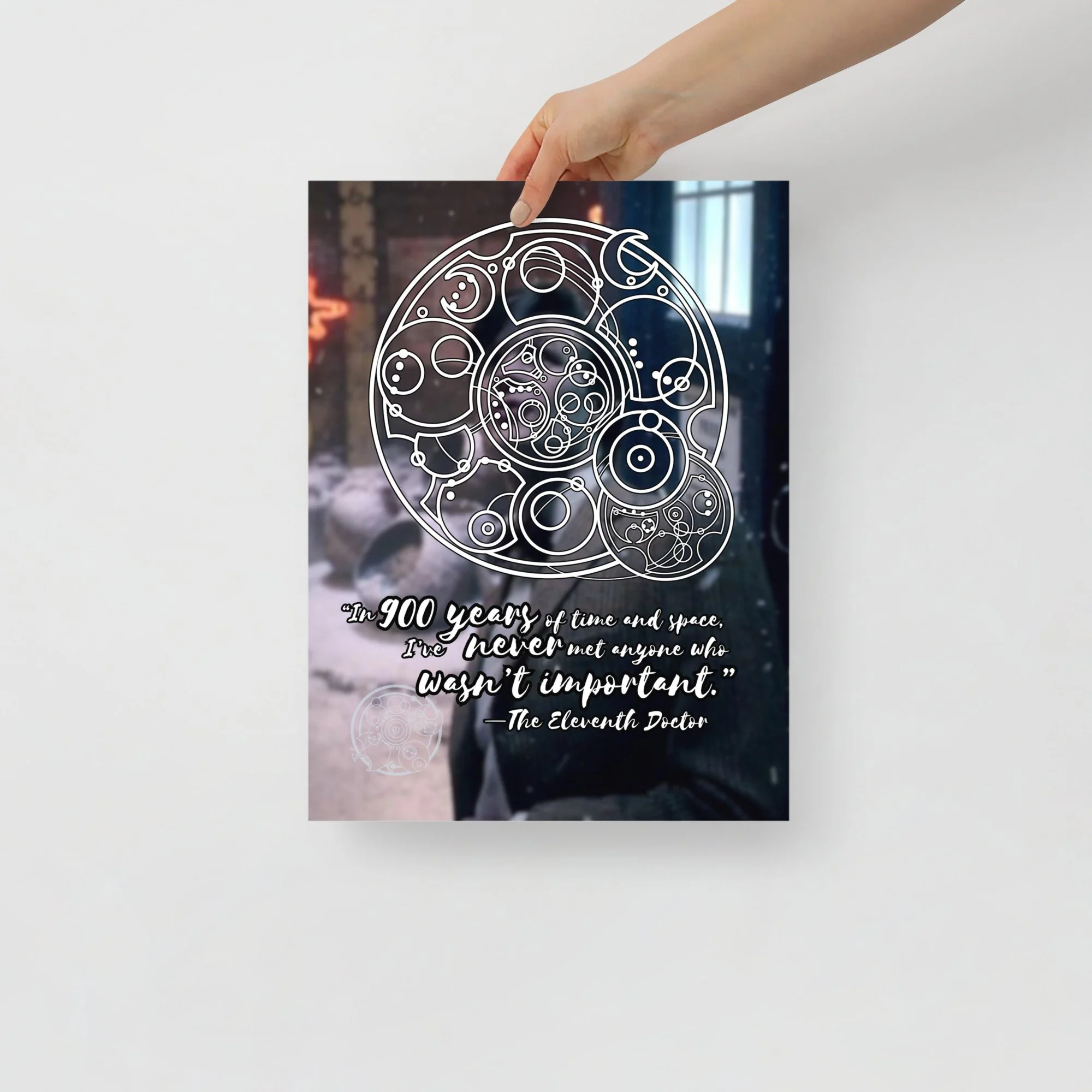 11th Doctor Quote in Circular Gallifreyan Poster, Matt Smith background Poster - "In 900 years of time and space, I've never met anyone who wasn't important."