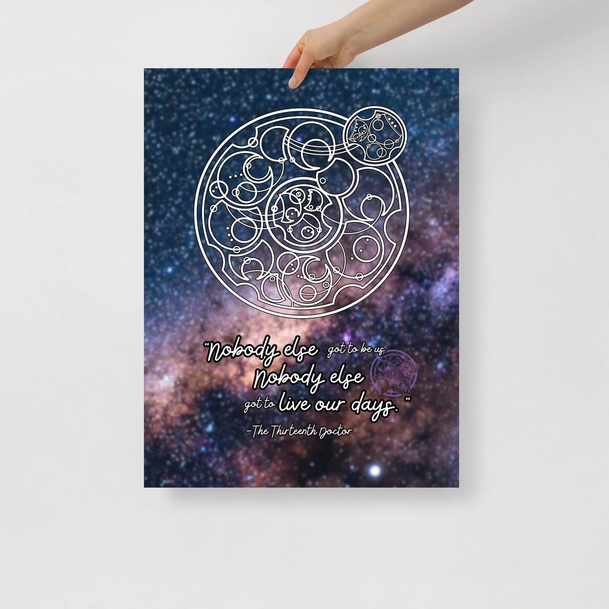 Doctor Who 13th Doctor Quote in Circular Gallifreyan Poster - outer space background - “Nobody else got to be us. Nobody else got to live our days.“