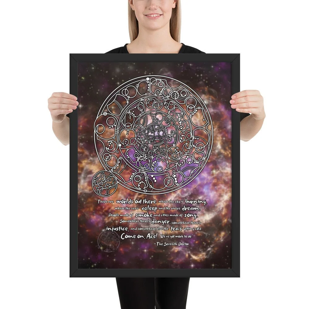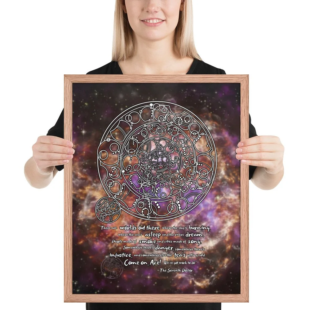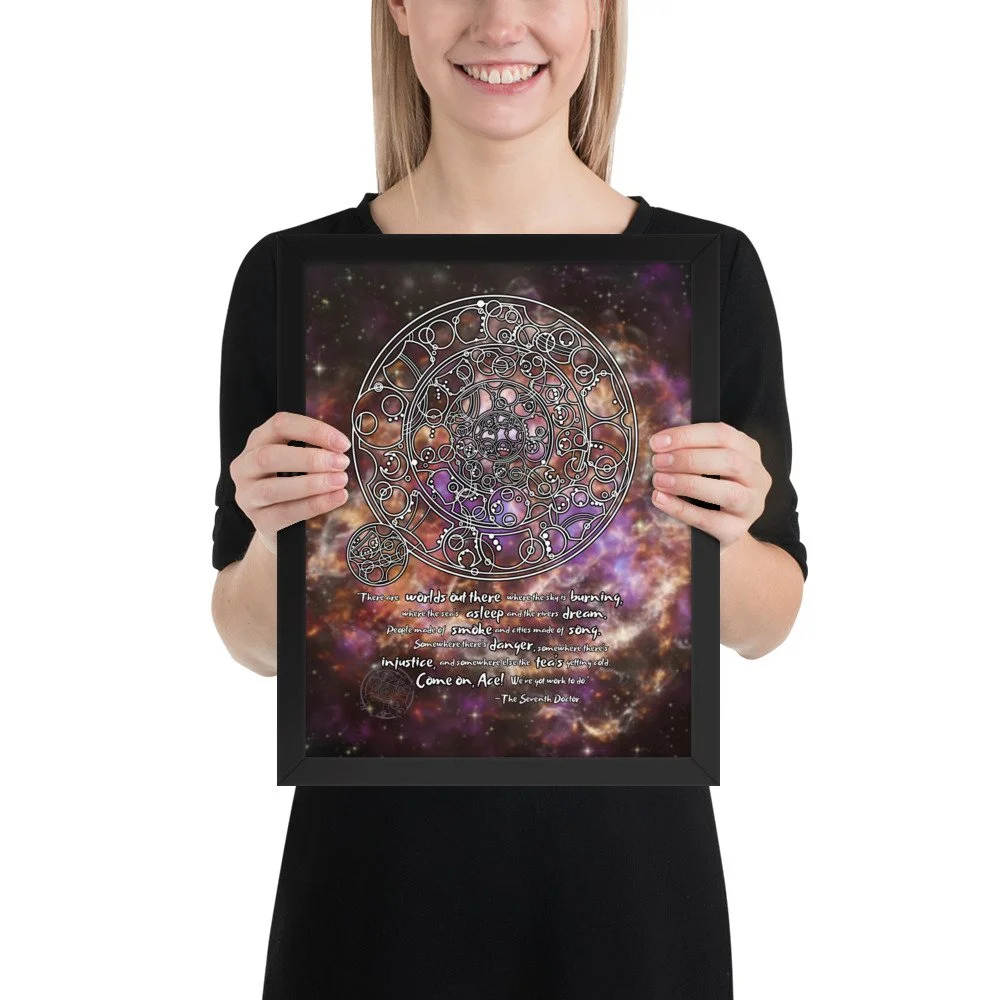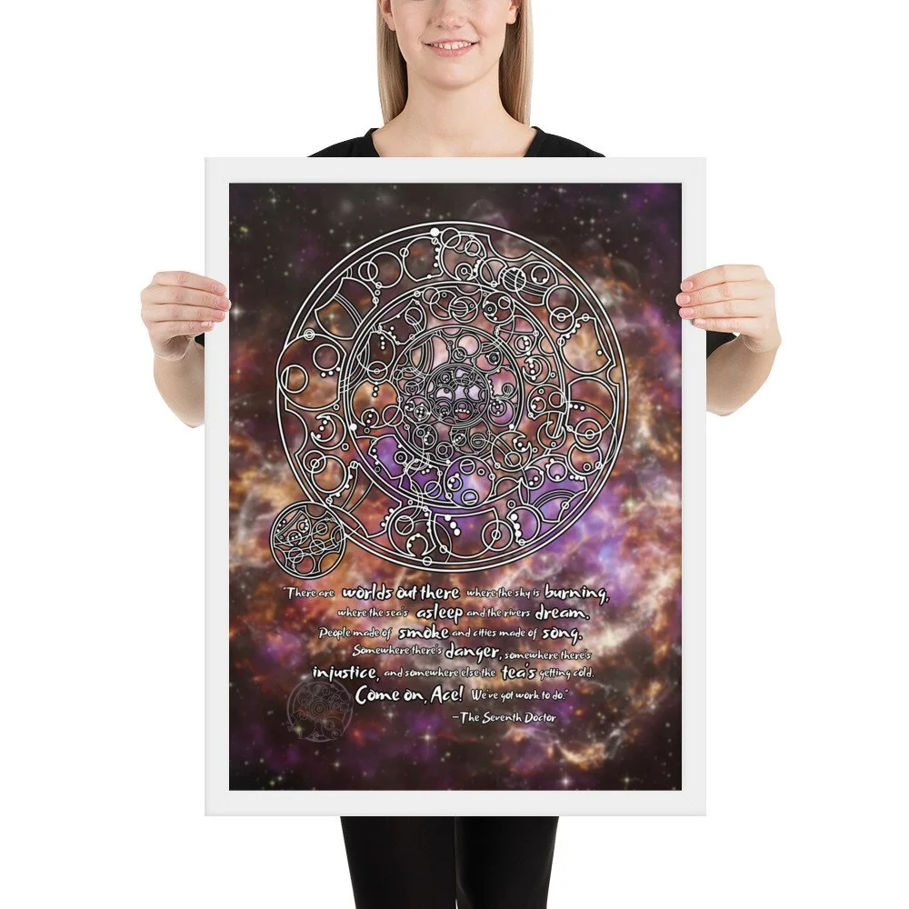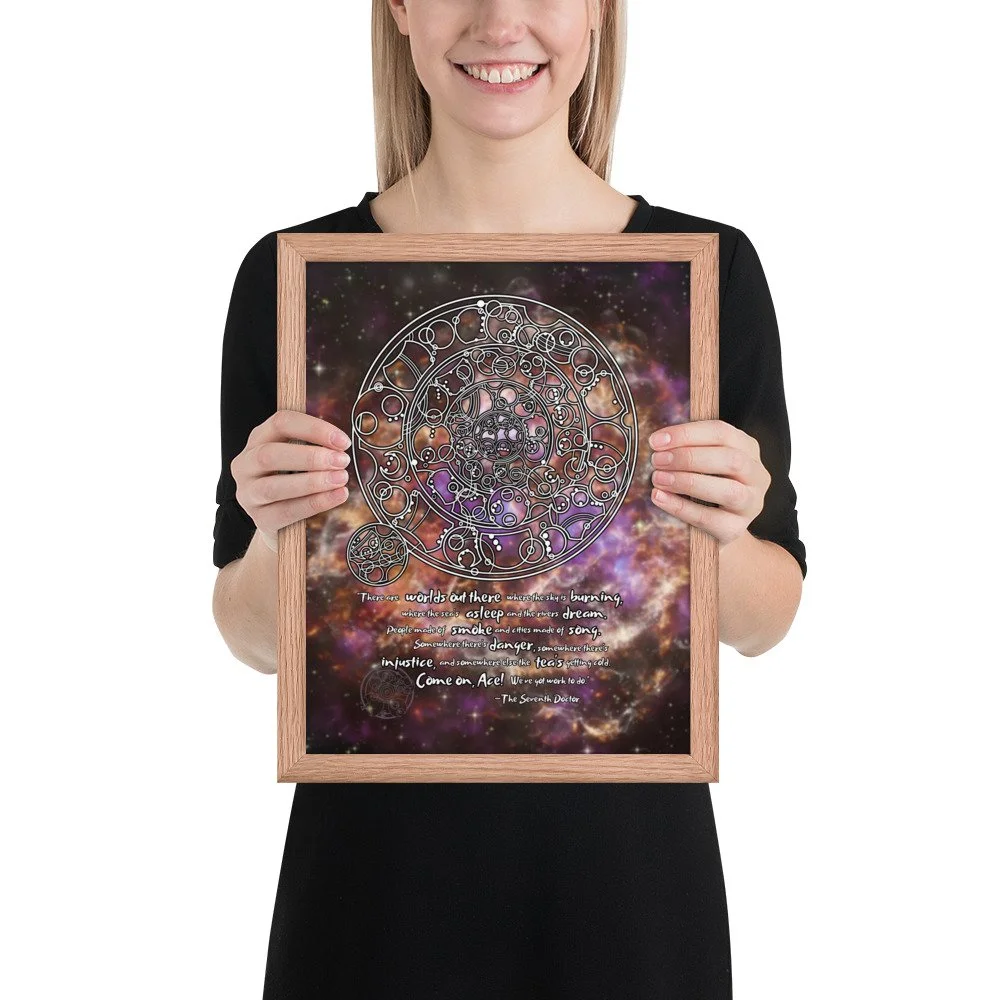 Doctor Who 7th Doctor Quote in Circular Gallifreyan Framed Poster - outer space background - "There are worlds out there where the sky is burning..."