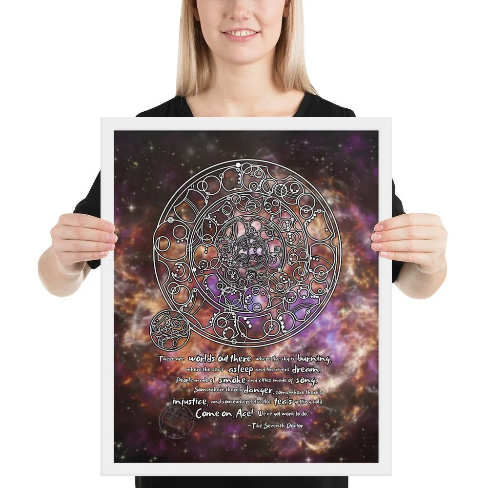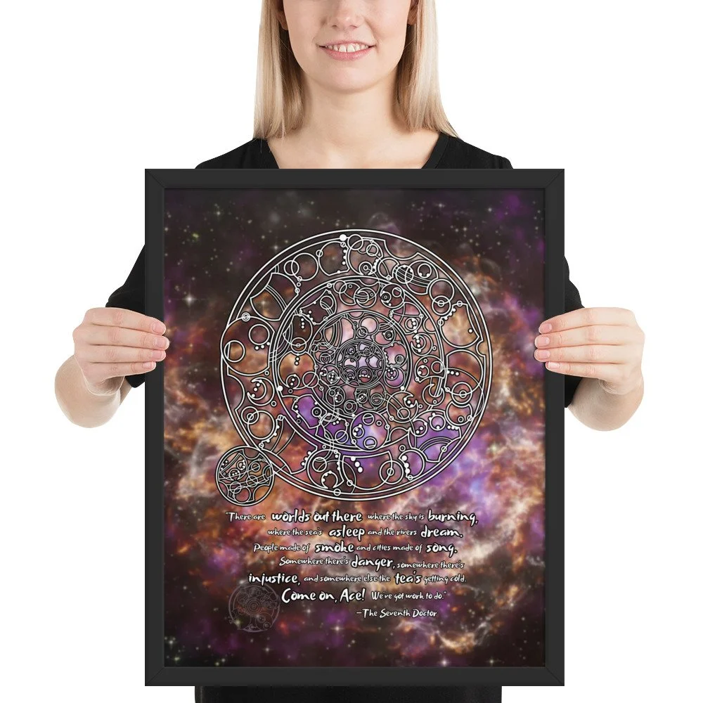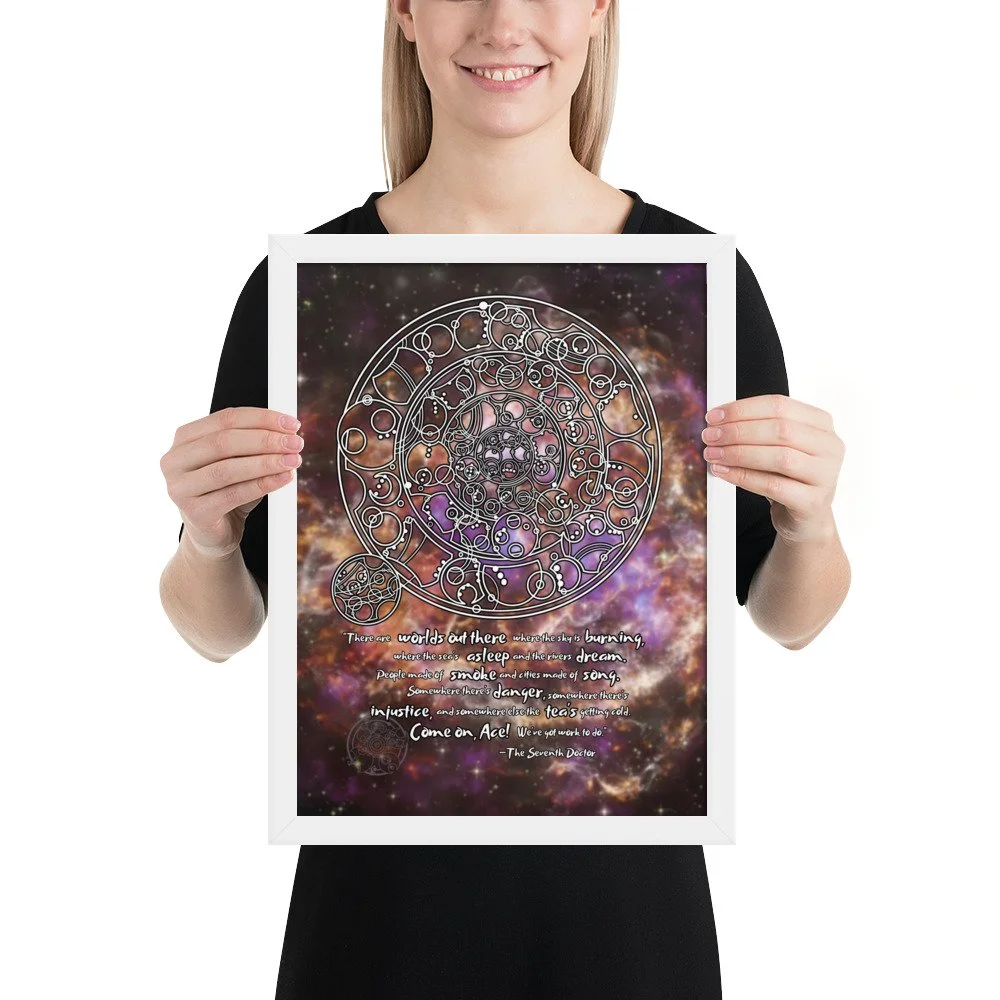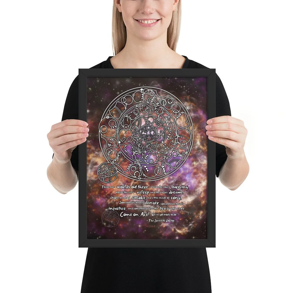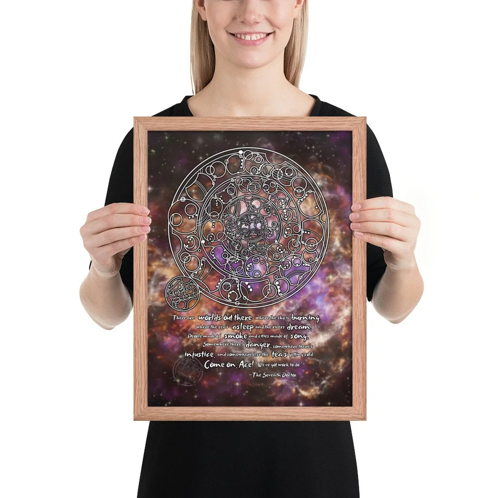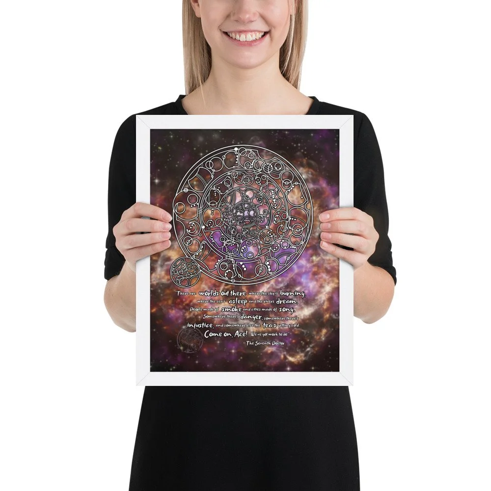 Doctor Who 7th Doctor Quote in Circular Gallifreyan Framed Poster - outer space background - "There are worlds out there where the sky is burning..."
